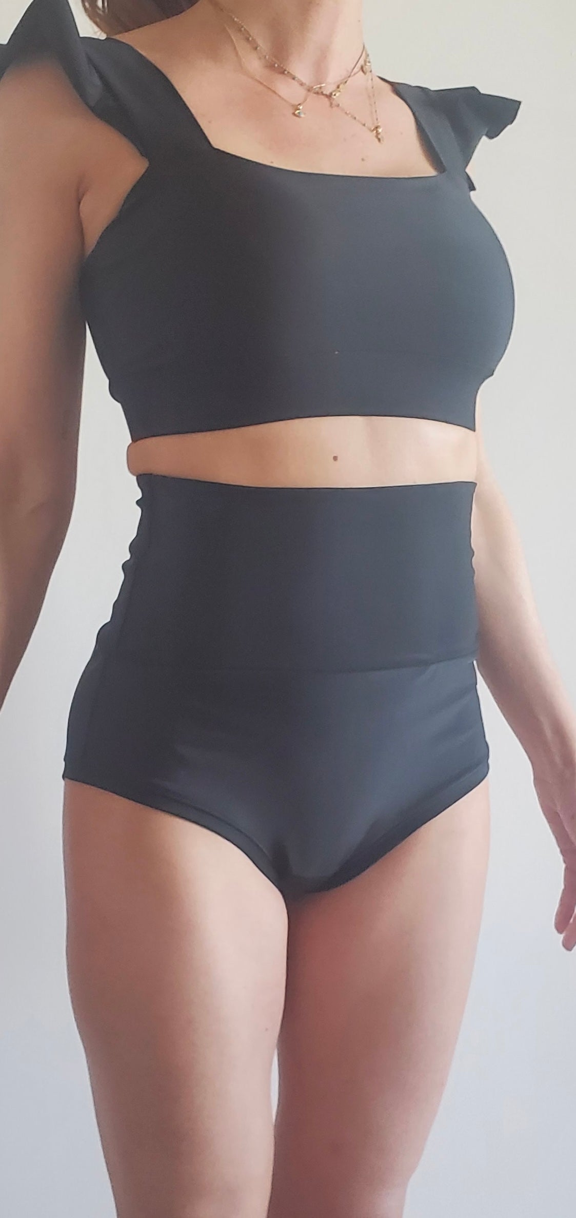 La coupe taille haute de la culotte permet un effet gainant que j'adore ! Et surtout, elle se replie sur elle même pour libérer la taille en cas de besoin de grip.